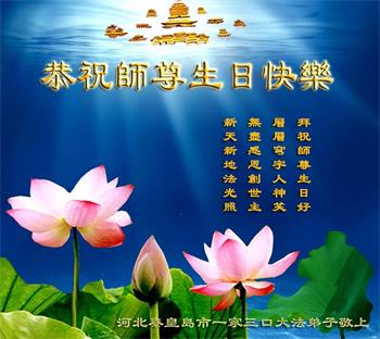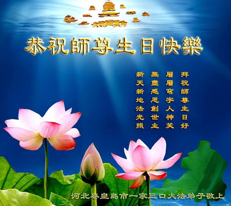 【明慧网二零二零年五月十一日】 河北秦皇岛市一家三口恭祝慈悲伟大的师尊生日快乐!