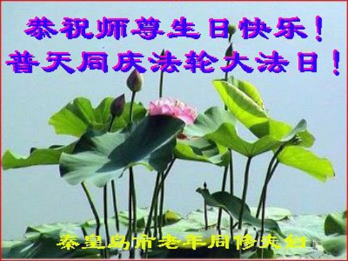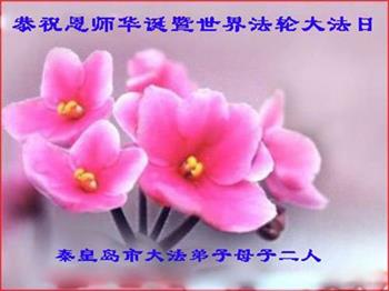 河北省秦皇岛大法弟子母子二人恭祝恩师华诞暨世界法轮大法日!