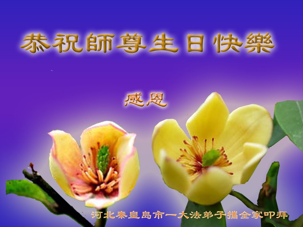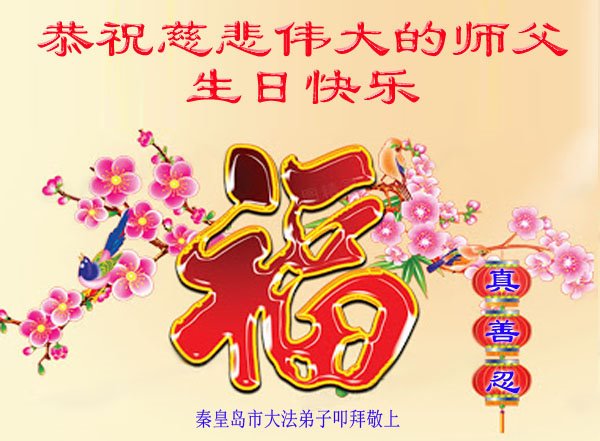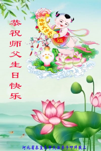 恭祝师尊生日快乐!谢谢师尊的慈悲苦度!师尊辛苦了! 感谢师尊对我们全家人的慈悲保护与救度!弟子无以回报。弟子一定听师尊的话,走师尊安排的路,多学法,学好法,向内找,修好自己,多去执着心,走正走好师尊安排的路,跟师尊回家。 河北省秦皇岛市大法弟子敬上 河北省秦皇岛市大法弟子及全家恭祝师尊生日快乐!