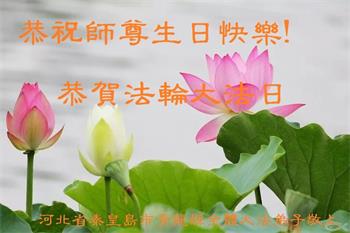 恭贺法轮大法日! 河北省秦皇岛三位大法弟子恭祝慈悲伟大的师尊生日快乐!恭贺世界法轮大法日!