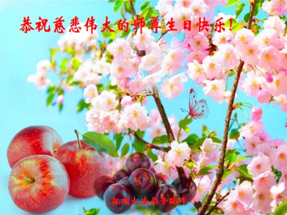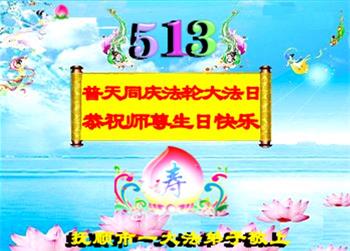 感恩师尊慈悲苦度, 盼望师尊早回国度; 家乡弟子兑现誓约, 紧跟师尊正法脚步; 唯愿师尊少些操劳, 弟子用正念走正路。 辽宁省抚顺市大法弟子恭祝师尊生日快乐!