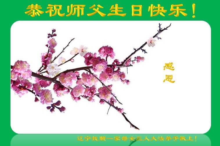 辽宁省抚顺市母女三位大法弟子恭祝师父生日快乐!