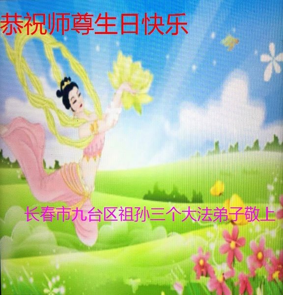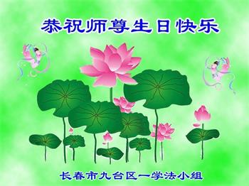 吉林省长春市九台市区一学法小组大法弟子恭祝慈悲伟大的师尊生日快乐!