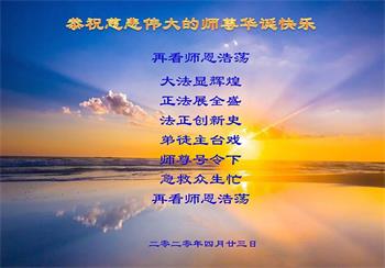 【明慧网二零二零年五月十一日】 吉林省长春大法弟子恭祝师尊生日快乐!