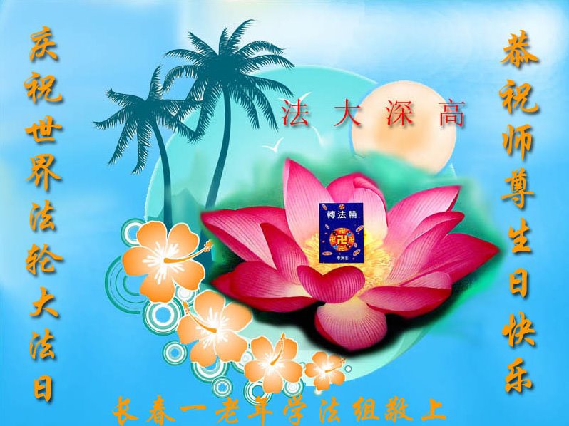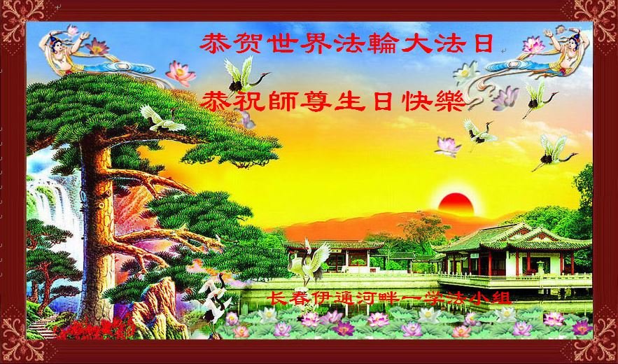贺华诞师恩万里绵长 大法日喜迎普天同庆 长春市一学法小组合十敬上! 吉林省长春大法弟子恭祝师尊华诞暨世界法轮大法日!