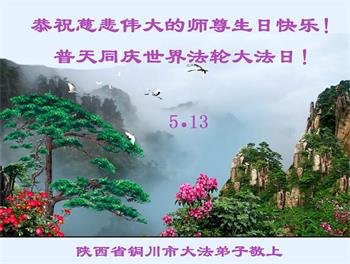 陕西省铜川市大法弟子恭祝慈悲伟大的师尊生日快乐!普天同庆世界法轮大法日!
