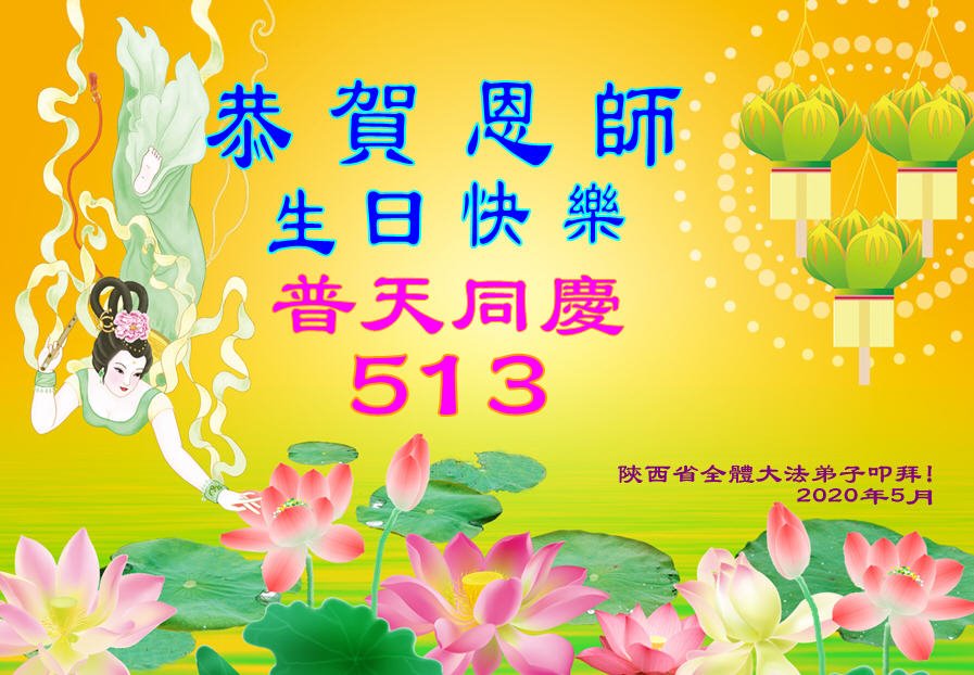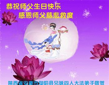 陕西省大法弟子恭祝慈悲伟大的师父生日快乐!