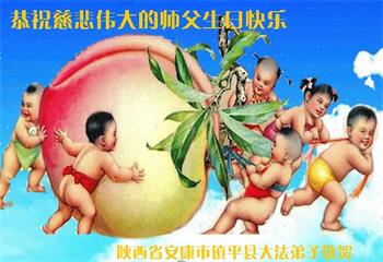 陕西省安康市镇平县大法弟子恭祝慈悲伟大的师父生日快乐!