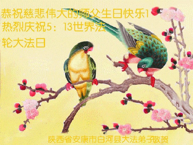 恭祝世界法轮大法日恭祝师父生日快乐! 陕西省富平大法弟子敬上 陕西省安康市白河县大法弟子恭祝慈悲伟大的师父生日快乐!