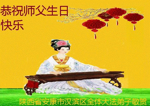 陕西省安康市汉滨区全体大法弟子恭祝慈悲伟大的师父生日快乐!