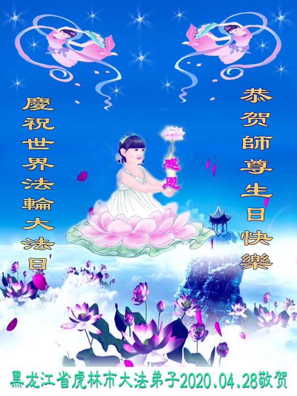 【明慧网二零二零年五月十一日】 黑龙江省鸡西市虎林市大法弟子恭祝师尊生日快乐!暨世界法轮大法日!