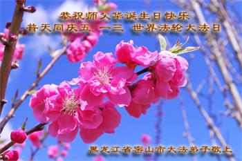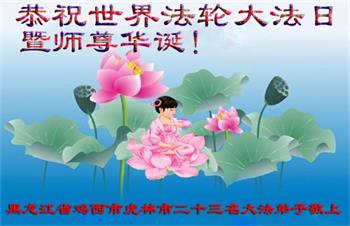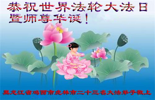 跟上师父正法進程,做好师父要求的三件事,精進实修,在历史的最危险中多救人,兑现史前大愿,以报师恩。 黑龙江省鸡西市虎林市二十三名大法弟子恭祝师尊生日快乐!恭贺世界法轮大法日!