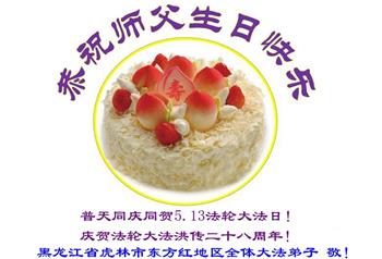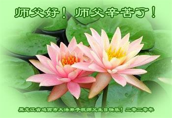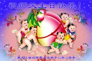 恭祝师父生日快乐!法轮大法好!真善忍好! 黑龙江省虎林市东方红镇一大法弟子与全家敬上 黑龙江省鸡西市大法弟子恭祝慈悲伟大的师尊生日快乐!