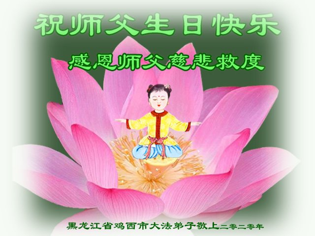 黑龙江省鸡西大法弟子恭祝师父生日快乐!