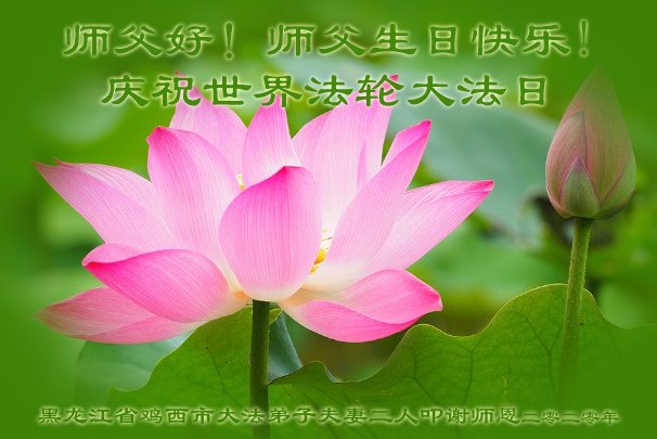 黑龙江省鸡西市大法弟子夫妻二人叩谢师恩!庆祝世界法轮大法日!祝师父生日快乐!