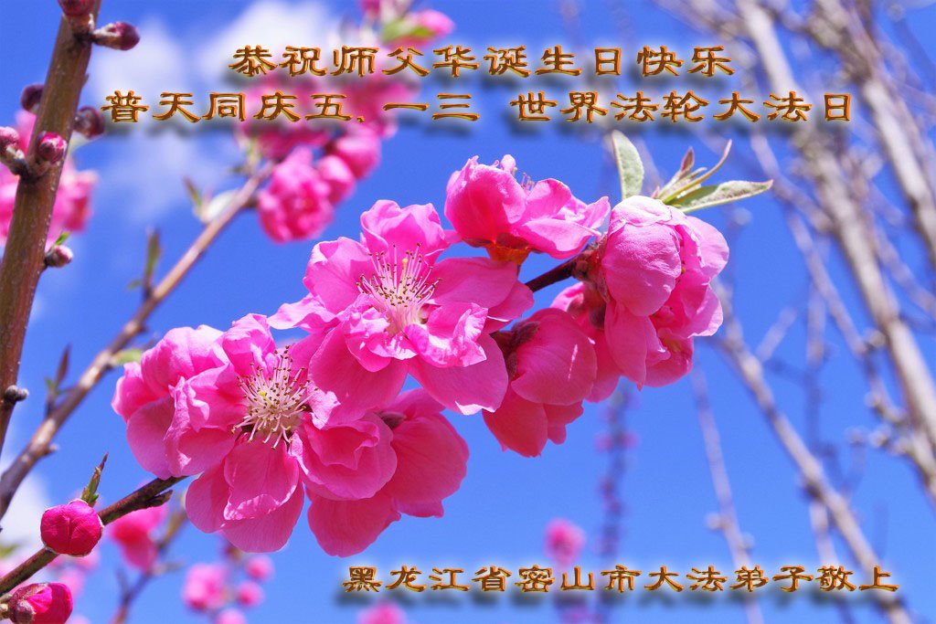 恭祝师尊生日快乐!庆祝世界法轮大法日!弟子谨遵师父教诲,做好三件事,圆满随师还! 黑龙江密山市大法弟子 2020年5月5日 |