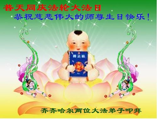 黑龙江省齐齐哈尔两位大法弟子恭祝慈悲伟大的师尊生日快乐!普天同庆法轮大法日!