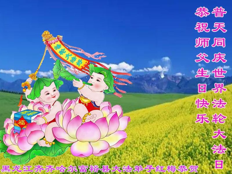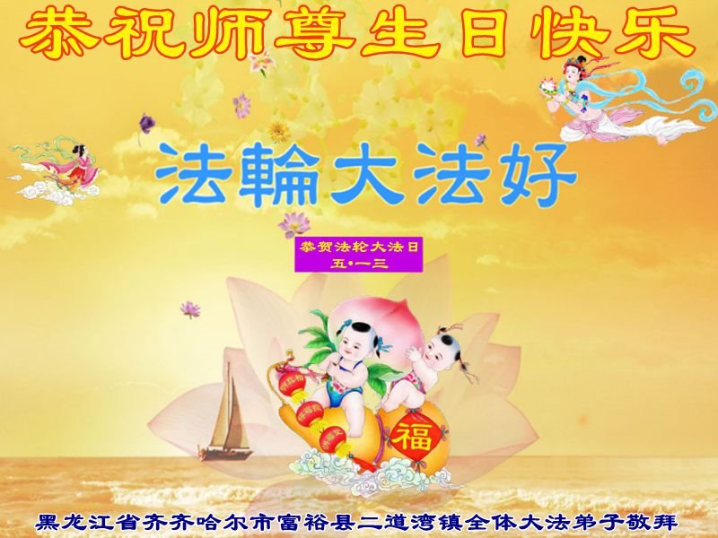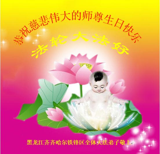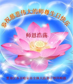 黑龙江省齐齐哈尔碾子山大法弟子恭祝慈悲伟大的师父生日快乐!普天同庆世界法轮大法日!