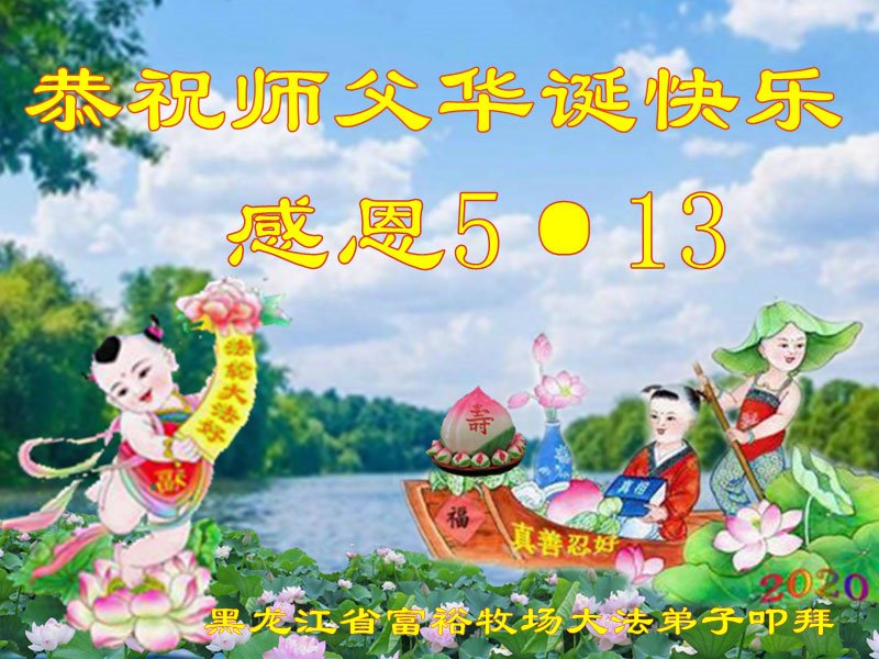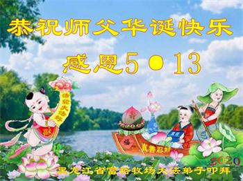 【明慧网二零二零年五月十一日】 黑龙江省齐齐哈尔市富裕县二道湾镇全体大法弟子恭祝师尊生日快乐!恭贺世界法轮大法日!
