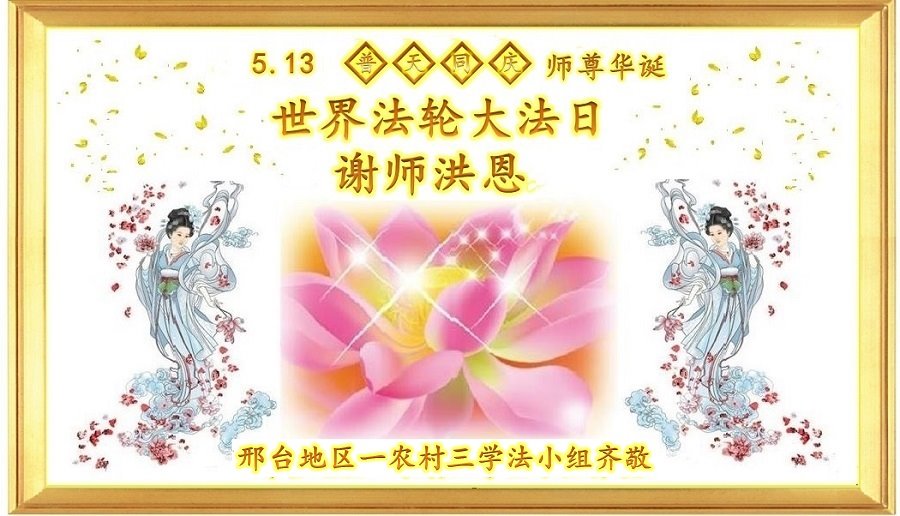 【明慧网二零二零年五月十一日】 河北省邢台地区一农村三学法小组大法弟子齐敬师尊华诞!