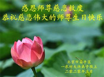 祝师父生日快乐!法轮大法好,真善忍好!师父慈悲,师父辛苦了! 北京市昌平区一农村大法弟子恭祝师尊生日快乐!