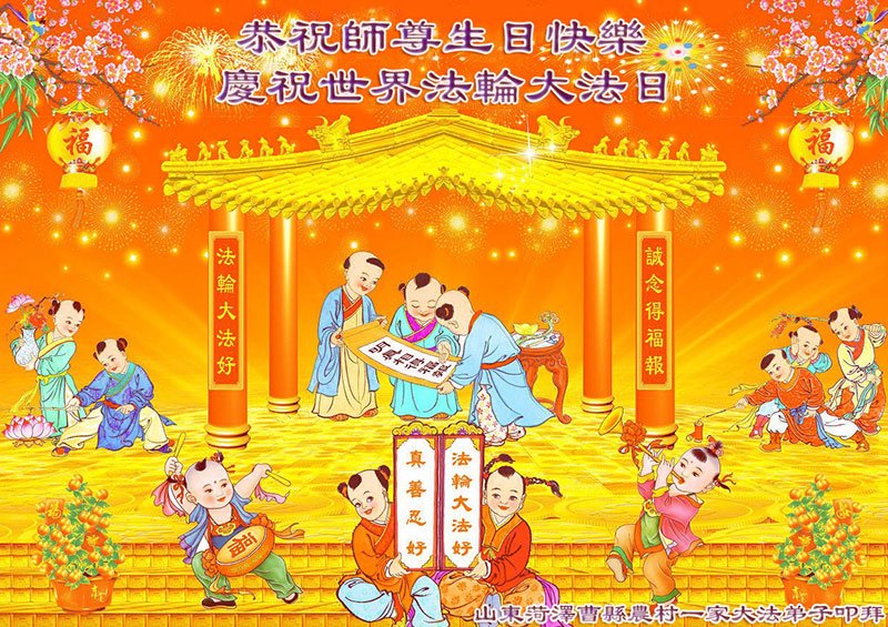 山东菏泽曹县农村一家大法弟子叩拜师尊!恭祝师尊生日快乐!庆祝世界法轮大法日!