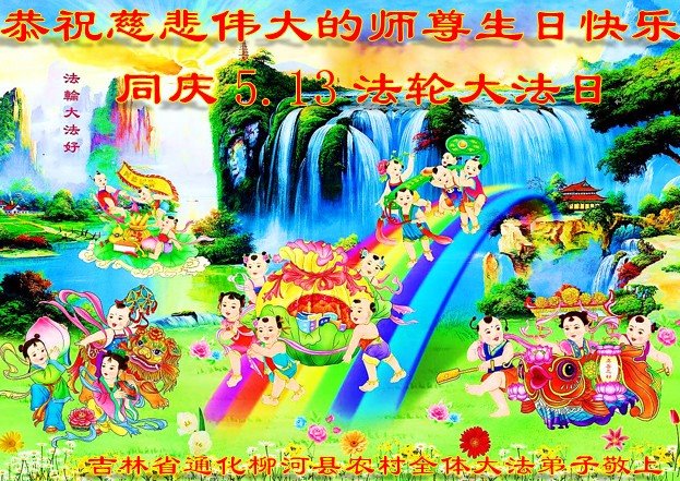 吉林省通化柳河县全体农村大法弟子恭祝慈悲伟大的师尊生日快乐!普天同庆世界法轮大法日!