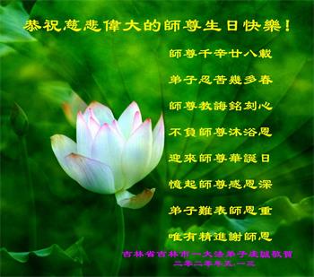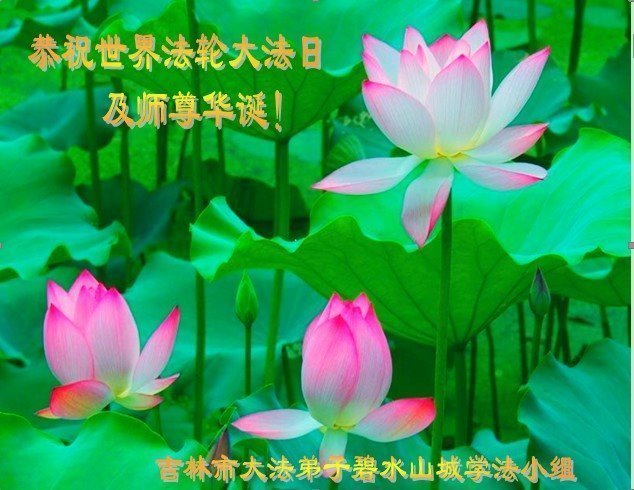 吉林省吉林市舒兰市全体大法弟子敬上 吉林省吉林市大法弟子碧水山城学法小组大法弟子恭祝世界法轮大法日及师尊华诞!