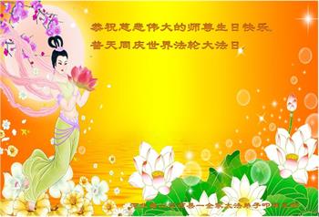 恭祝慈悲伟大的师父生日快乐! 师父您辛苦了,弟子想念师尊,谢谢师尊的一路加持。 唐山一大法弟子叩拜 河北省唐山市路南大法弟子恭祝慈悲伟大的师尊生日快乐!