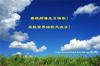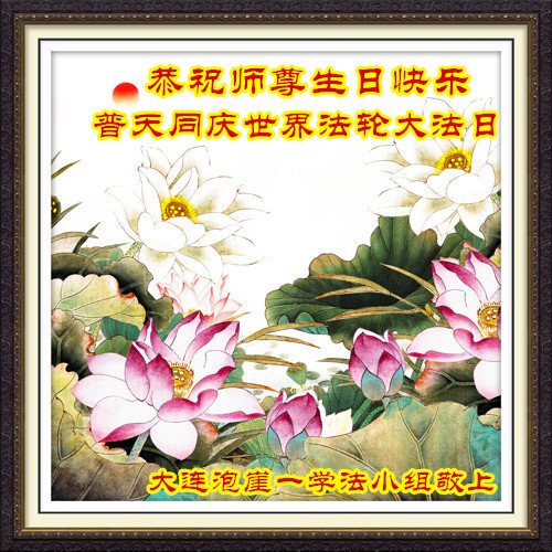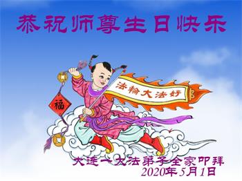 辽宁省大连一大法弟子及家人恭贺世界法轮大法日暨师尊华诞!
