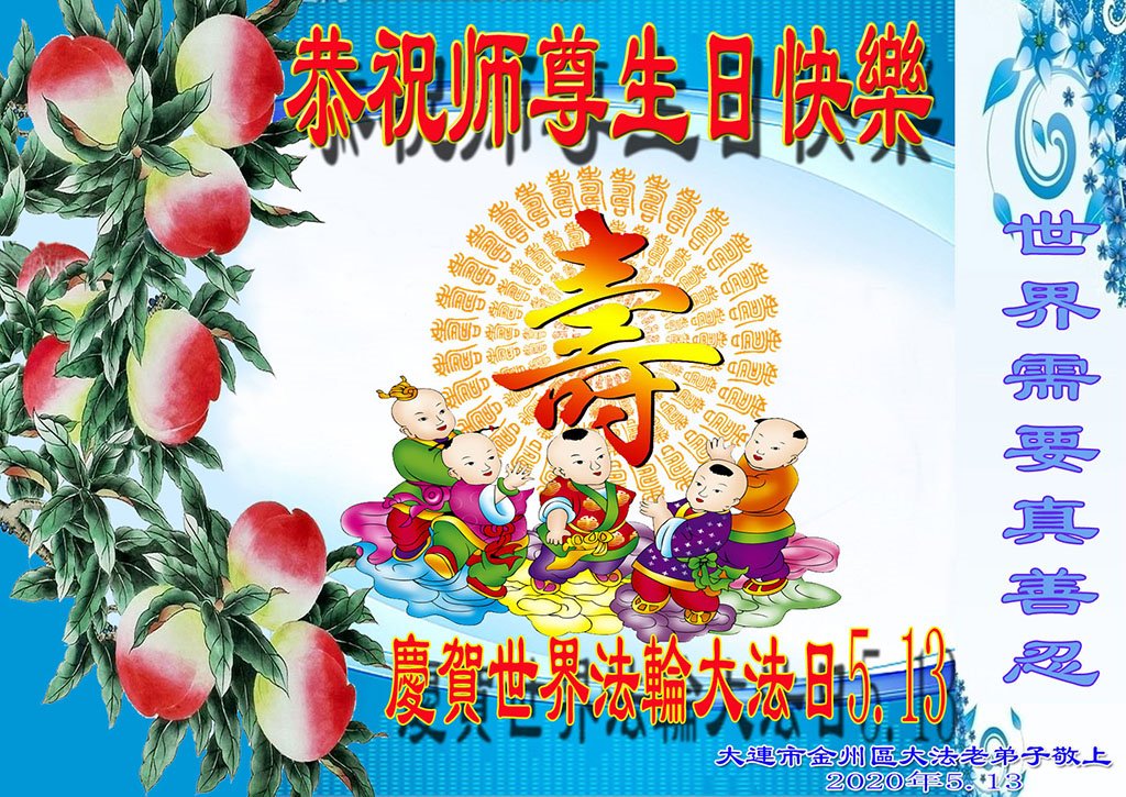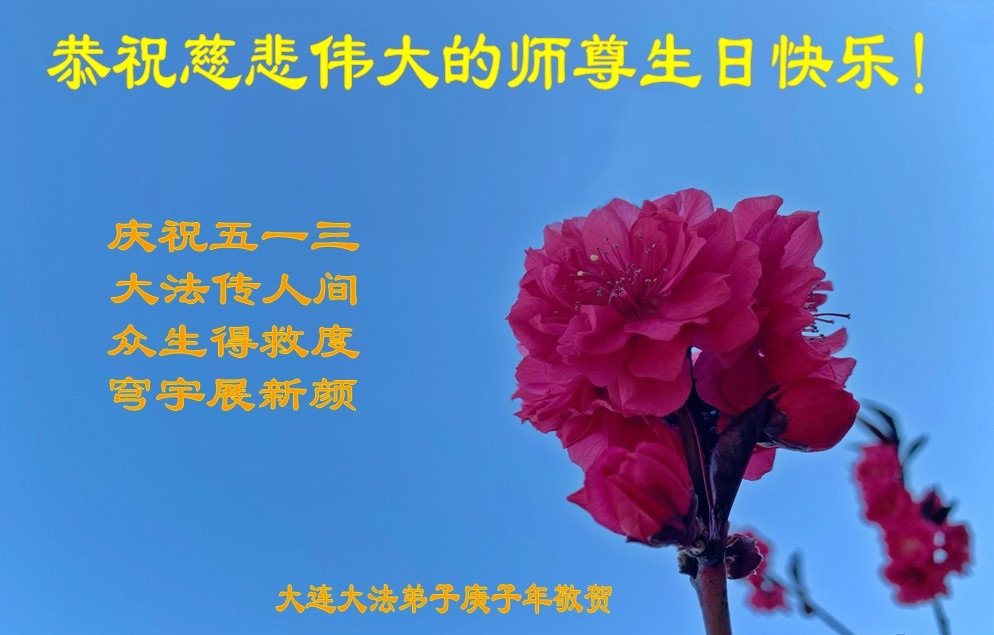 【明慧网二零二零年五月十一日】 辽宁省大连市大法弟子恭祝师尊生日快乐!普天同庆世界世界法轮大法日!