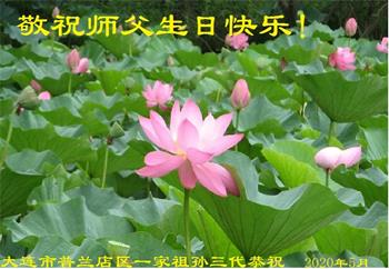 辽宁省大连市一大法弟子全家恭祝师尊生日快乐!