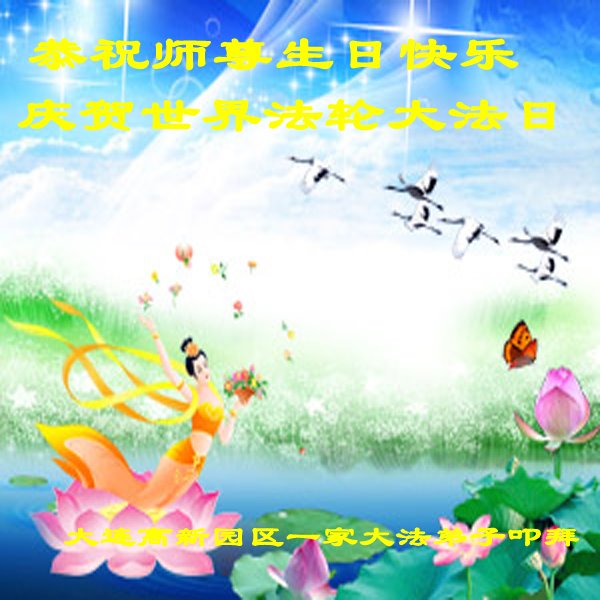 辽宁省大连几位大法弟子恭祝师尊生日快乐!庆祝世界法轮大法日!