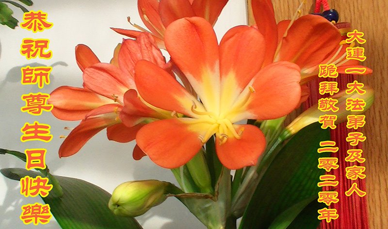 2020年世界法轮大法日即将到来,恭祝师尊生日快乐!师父把宇宙大法洪传世间!弟子无以回报师尊的救度之恩,只有做好三件事,跟师父回家。 弟子跪拜师尊!谢谢师尊! 辽宁省大连市普兰店市区一老年大法弟子恭祝师尊生日快乐!