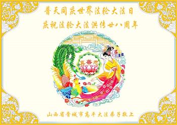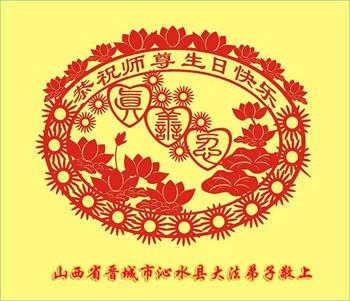 山西省阳泉市学法组大法弟子恭祝至尊至上慈悲伟大师尊六十九华诞暨二十一届世界法轮大法日快乐!
