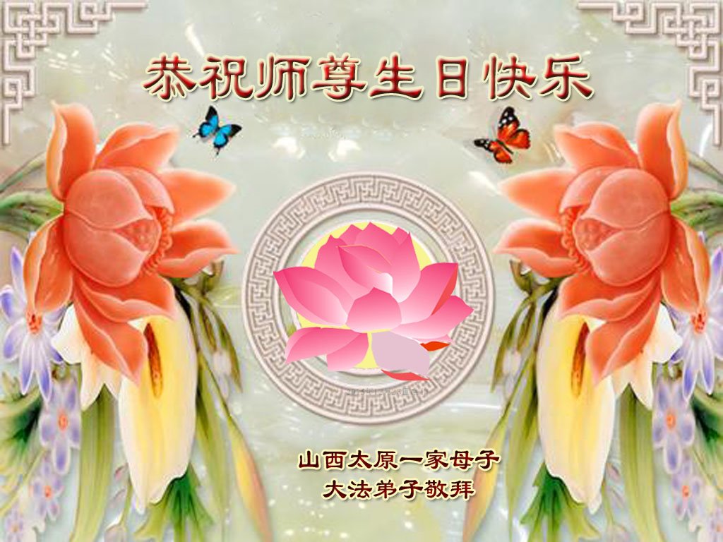 山西省太原市一母子大法弟子恭祝师尊生日快乐!