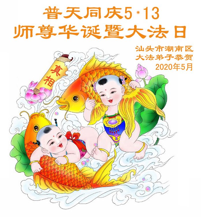 【明慧网二零二零年五月十一日】 广东省汕头潮南区大法弟子恭贺师尊华诞暨大法日!