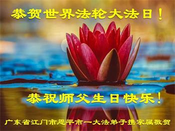 惠州两家大法弟子及家人叩拜师尊!恭祝师尊生日快乐! 广东省江门市恩平市全体大法弟子恭贺世界法轮大法日!恭祝师父生日快乐!