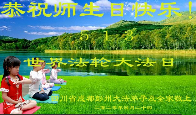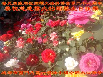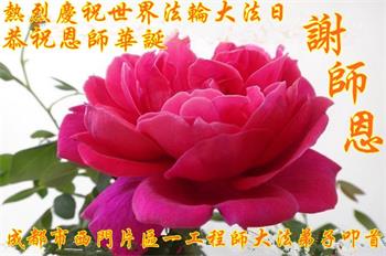 恭祝慈悲伟大的师尊生日快乐! 四川省成都市西门片区一工程师大法弟子热烈庆祝世界法轮大法日!