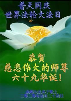 四川省成都市一大法弟子恭祝慈悲伟大师尊生日快乐!恭贺世界法轮大法日!