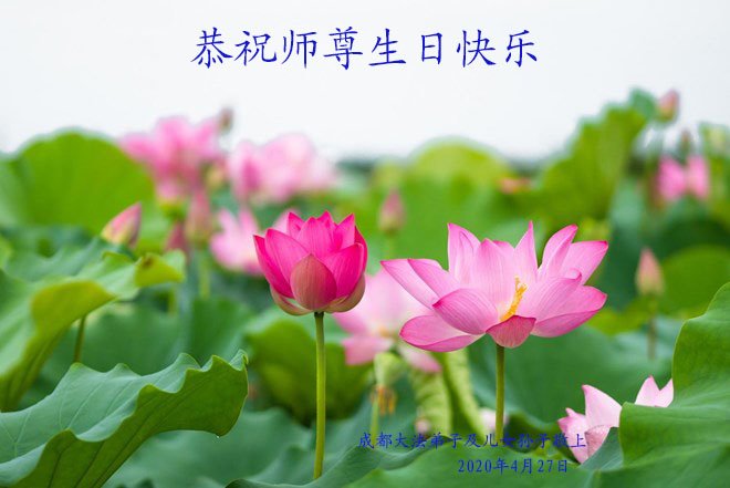 四川省成都市一大法弟子携家人恭祝慈悲伟大的师尊生日快乐!