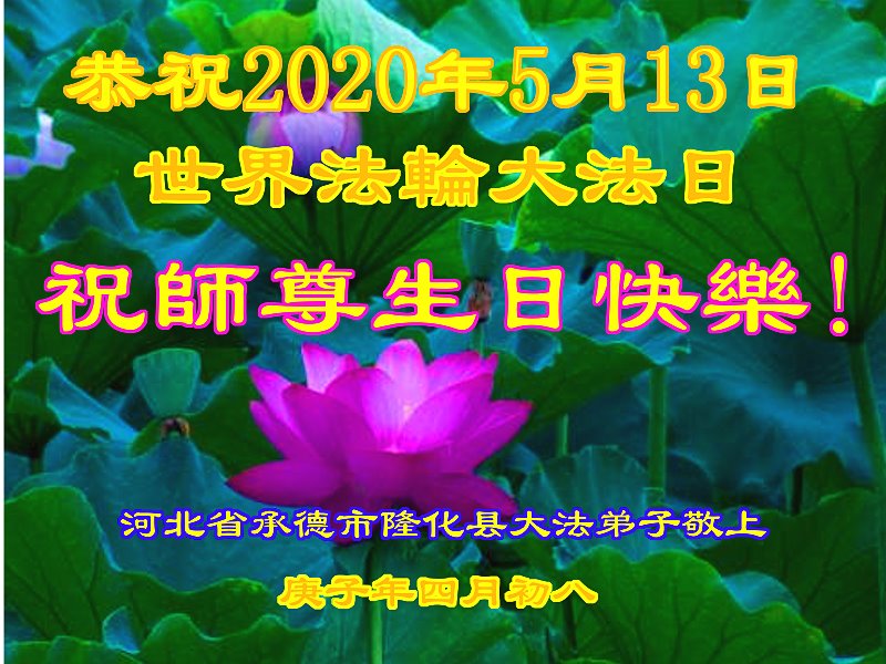 恭祝师尊生日快乐! 恭祝2020年5月13日世界法轮大法日! 河北省承德市隆化县大法弟子敬上 庚子年四月初八 河北省承德市隆化县大法弟子恭贺世界法轮大法日!
