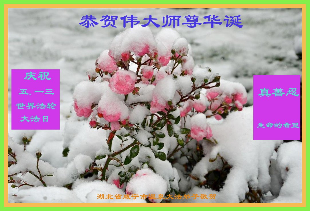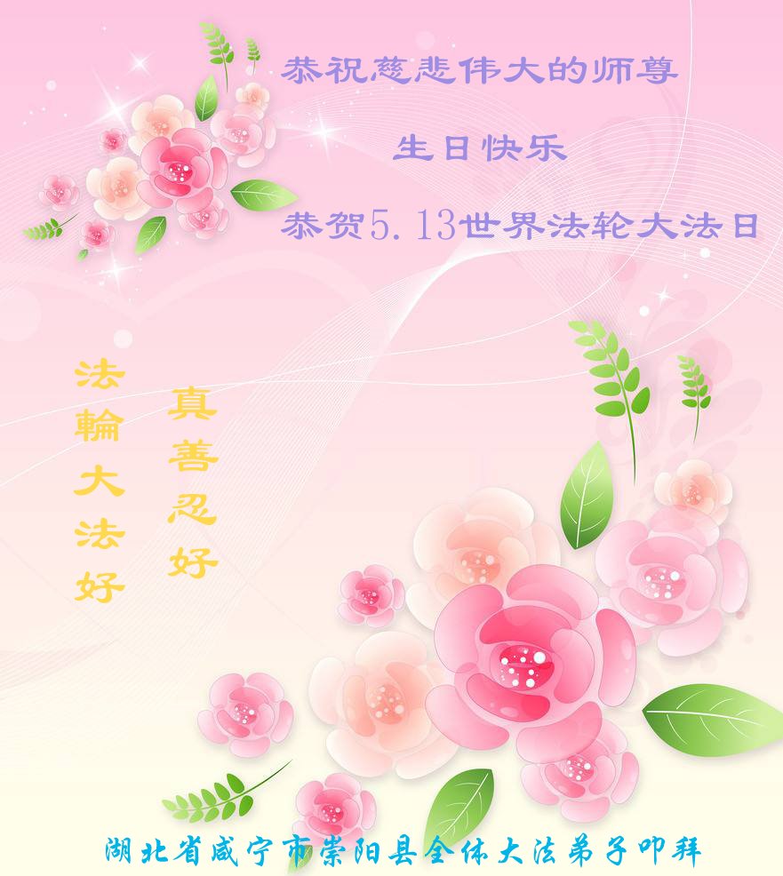 湖北省咸宁市崇阳县全体大法弟子恭祝慈悲伟大的师尊生日快乐!恭贺5.13世界法轮大法日!