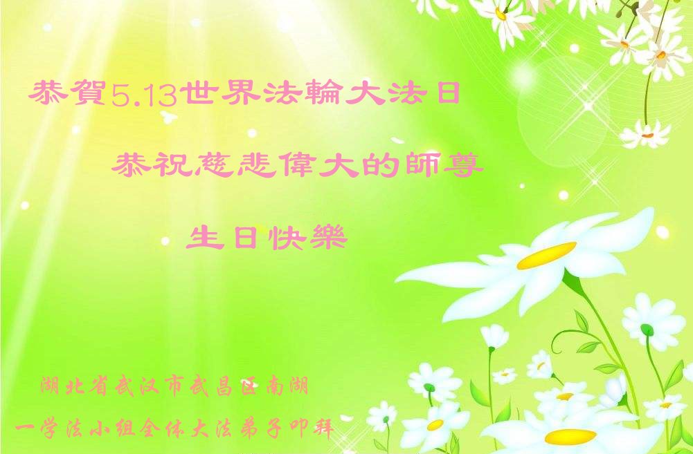 湖北省武汉市武昌区南湖一学法小组全体大法弟子恭贺5.13世界法轮大法日!恭祝慈悲伟大的师尊生日快乐!