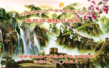 湖南省全体大法弟子庆祝第二十一届世界法轮大法日!恭祝师父生日快乐!恭贺法轮大法洪传二十八周年!