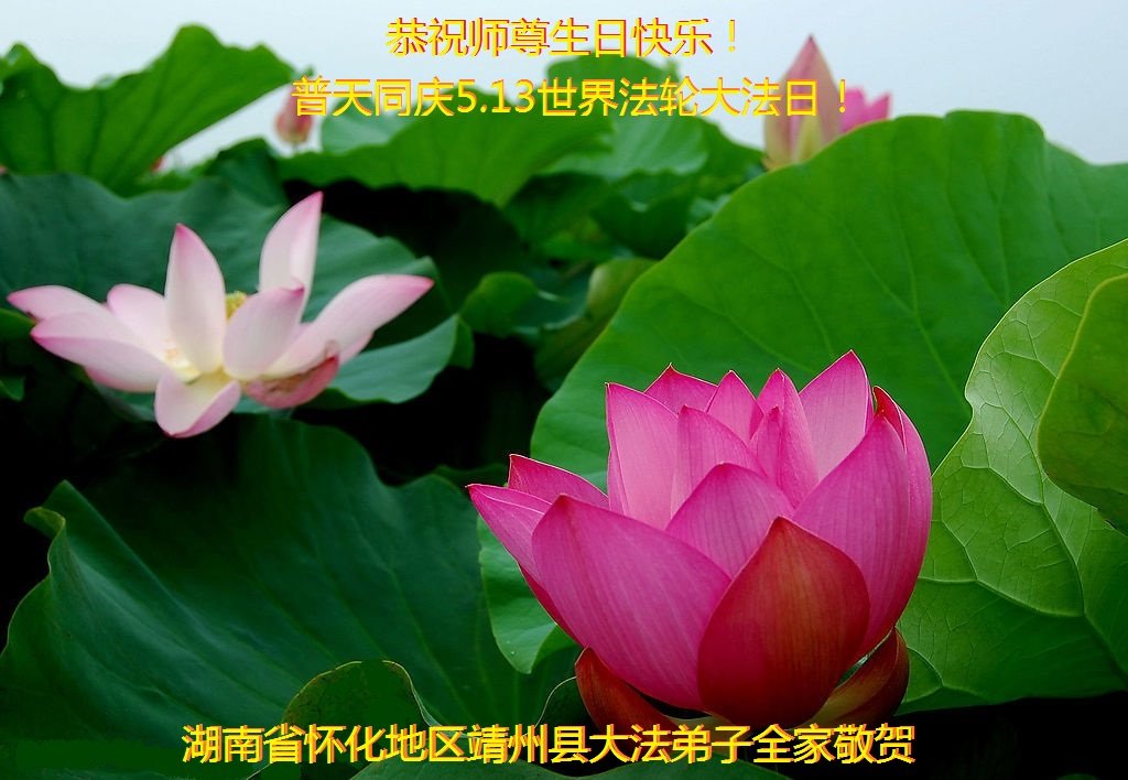 这是一个伟大的时代,在世风日下,物欲横流的今天。在人心不古,末法末劫的当下,一切都在败坏,法轮大法犹如世间的一股清流,荡涤着尘世的污浊,归正着人心与道德。真、善、忍的法理指引了多少人走出人世的迷途,帮助了多少人找到人生的意义。伟大的师尊、伟大的法,众生生生世世感恩,无尽的感恩! 这是一个辉煌的时代,无论多么残酷的迫害,疯狂的镇压,都丝毫动摇不了真修弟子对师对法坚如磐石的正信,只能更加彰显法轮大法的伟大,邪恶小丑的愚蠢与丑恶!二十八年的正法,慈悲无尽的救度! 值此法轮大法日盛大节日来临之际,千言万语汇成一句最真挚的祝愿:恭祝师尊生日快乐!法轮大法好!弟子唯有更精進,以报师恩! 愿众生明真相,在瘟疫中躲过天灭中共的劫难! 湖南省怀化地区靖州县大法弟子全家恭祝慈悲伟大的师尊生日快乐!