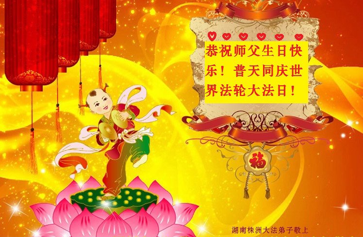 恭贺世界法轮大法日! 湖南岳阳华容大法弟子 湖南省湘潭市大法弟子恭祝师尊生日快乐!