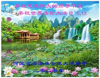 普天同庆5.13世界法轮大法日! 弟子要学好法实修向内找,争分夺秒抓紧时间多救人,珍惜师父给延长的宝贵时间。 河北省石家庄市深泽县全体大法弟子向伟大师尊恭贺华诞!庆祝5.13世界法轮大法日!
