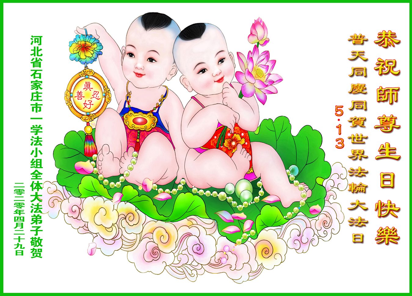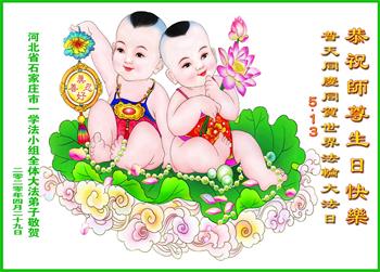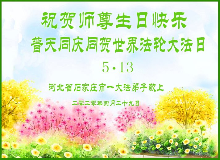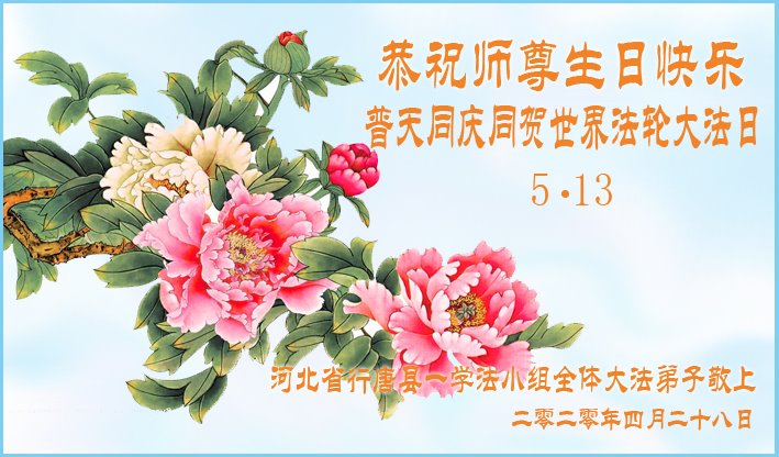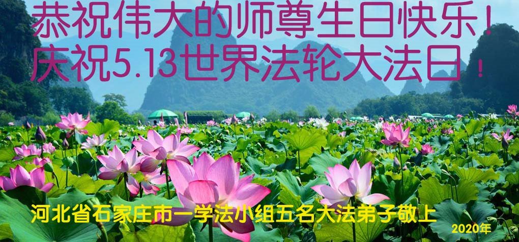 普天同庆同贺5·13世界法轮大法日! 河北省石家庄市一学法小组全体大法弟子敬贺 二零二零年四月二十九日 河北省石家庄市行唐县一学法小组全体大法弟子恭祝师尊生日快乐!
