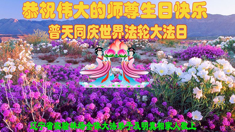辽宁省实验林场全体大法弟子及明真相家人恭祝师尊生日快乐!庆祝世界法轮大法日!